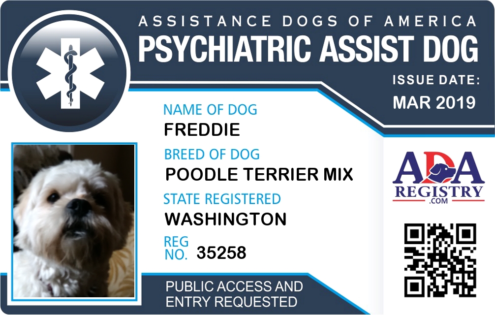 Psychiatric Service Dog Registration for Freddie