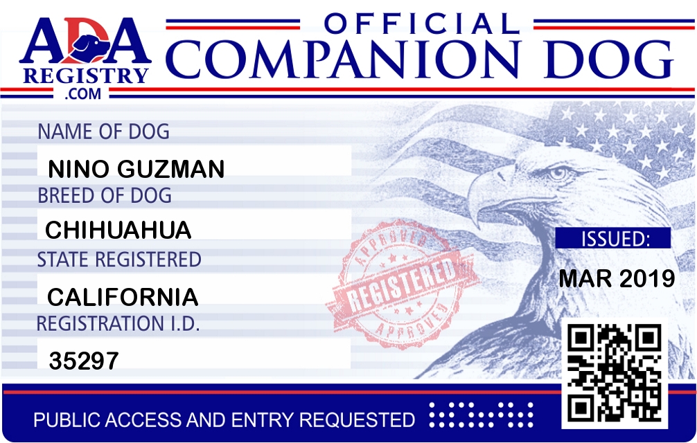 Companion Dog Registration for Nino Guzman