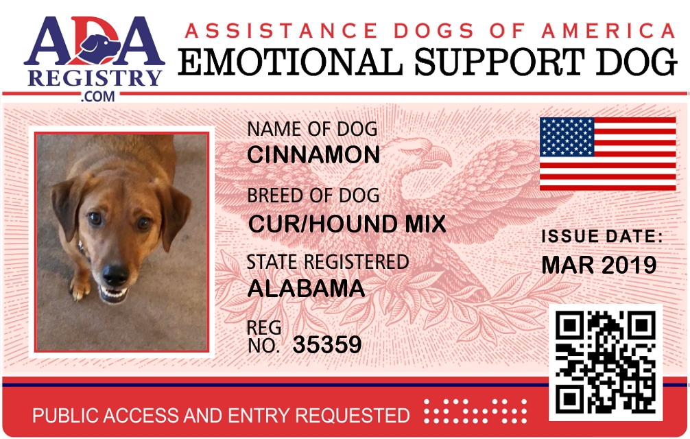 Emotional Support Dog Registration for Cinnamon