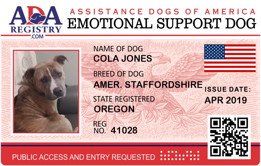 Emotional Support Dog Registration for Cola Jones