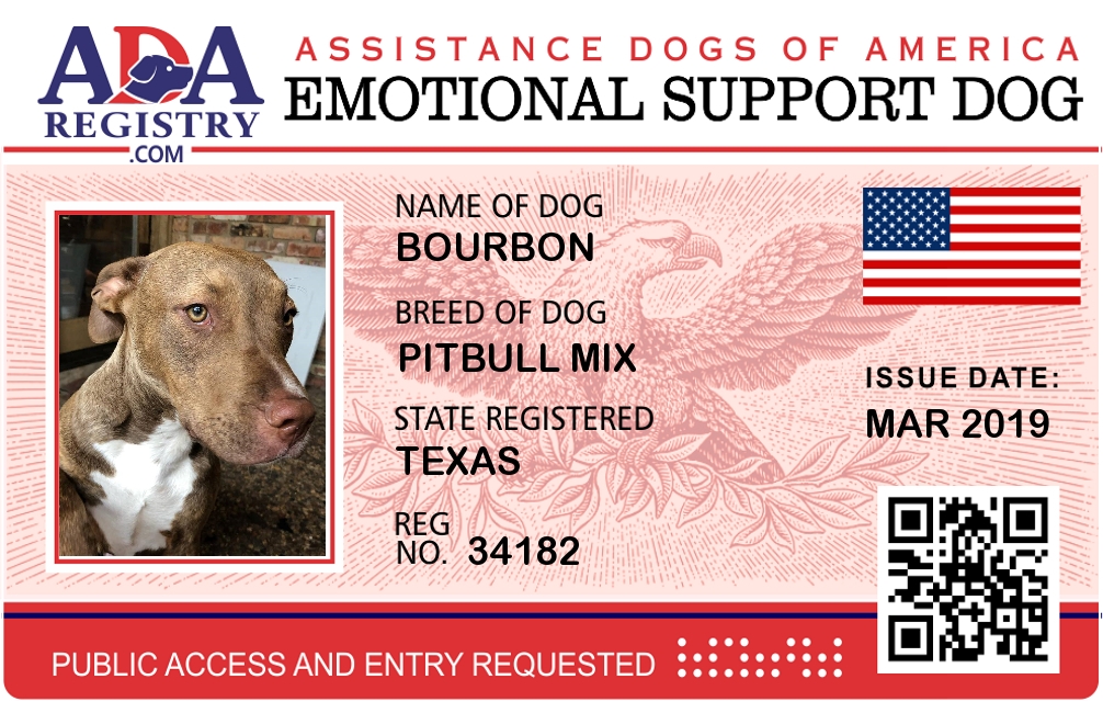 Emotional Support Dog Registration for Bourbon