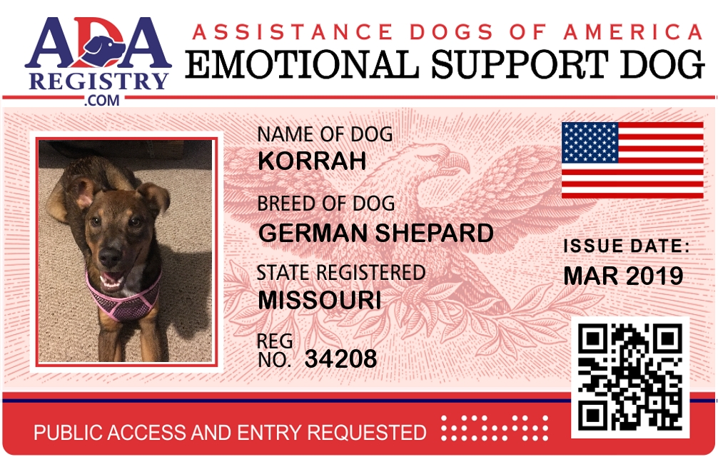 Emotional Support Dog Registration for Korrah