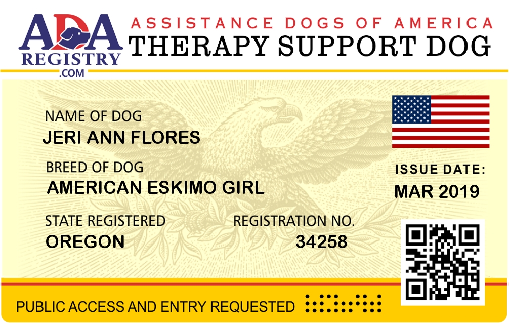 Therapy Dog Registration for Jeri Ann Flores