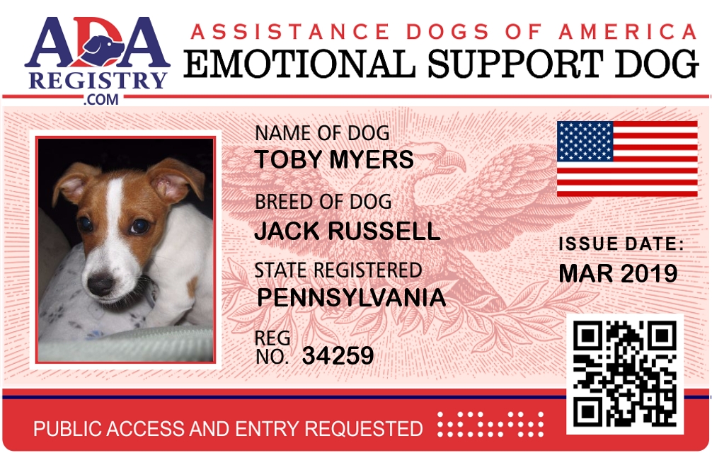 Emotional Support Dog Registration for Toby Myers