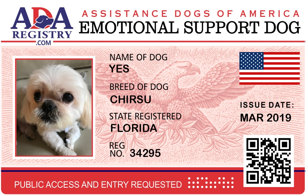 Emotional Support Dog Registration for Yes