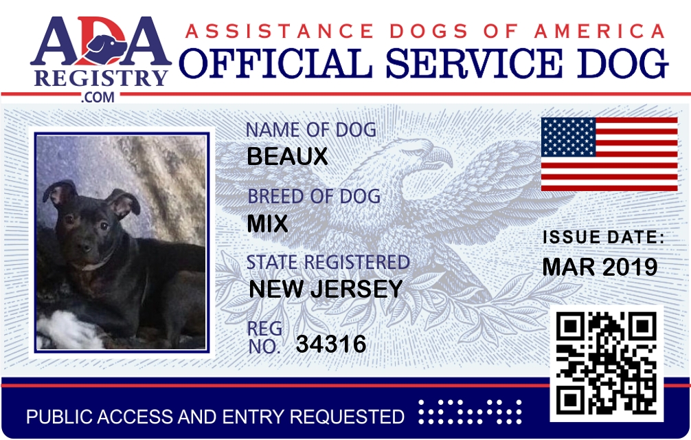 Service Dog Registration for Beaux