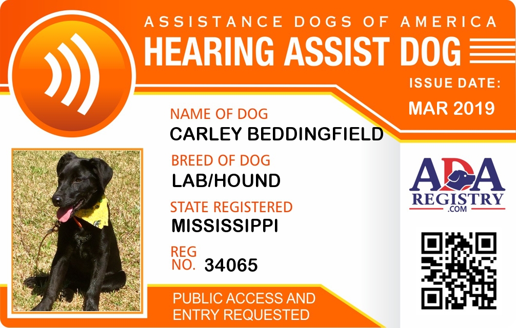 Hearing Assistance Dog Registration for Carley Beddingfield