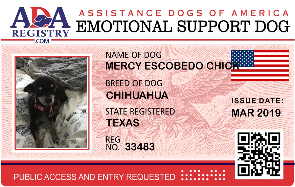 Emotional Support Dog Registration for Mercy Escobedo chick