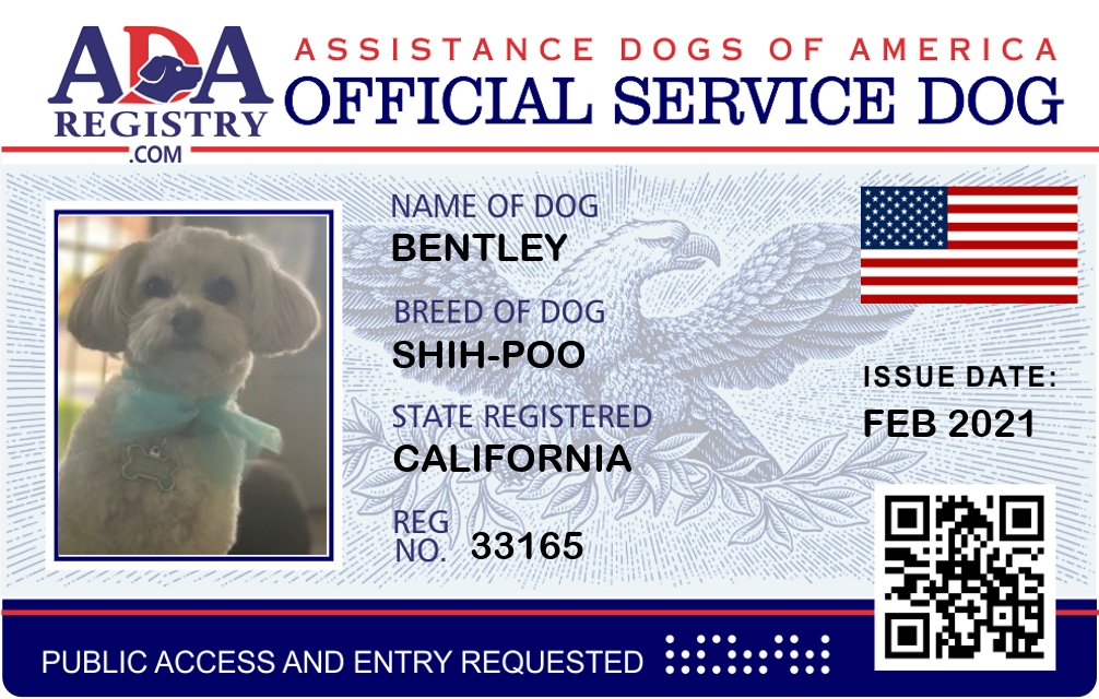 Service Dog Registration for Bentley