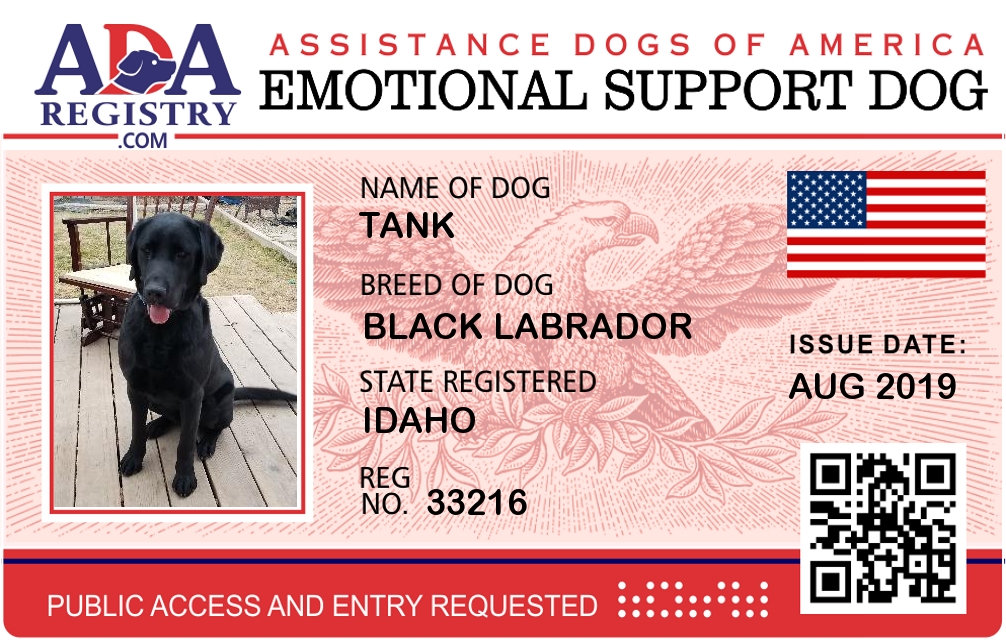 Emotional Support Dog Registration for Tank