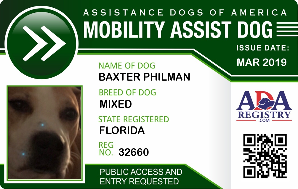 Brace / Mobility Assistance Dog Registration for Baxter Philman