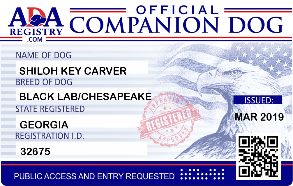 Companion Dog Registration for Shiloh Key Carver