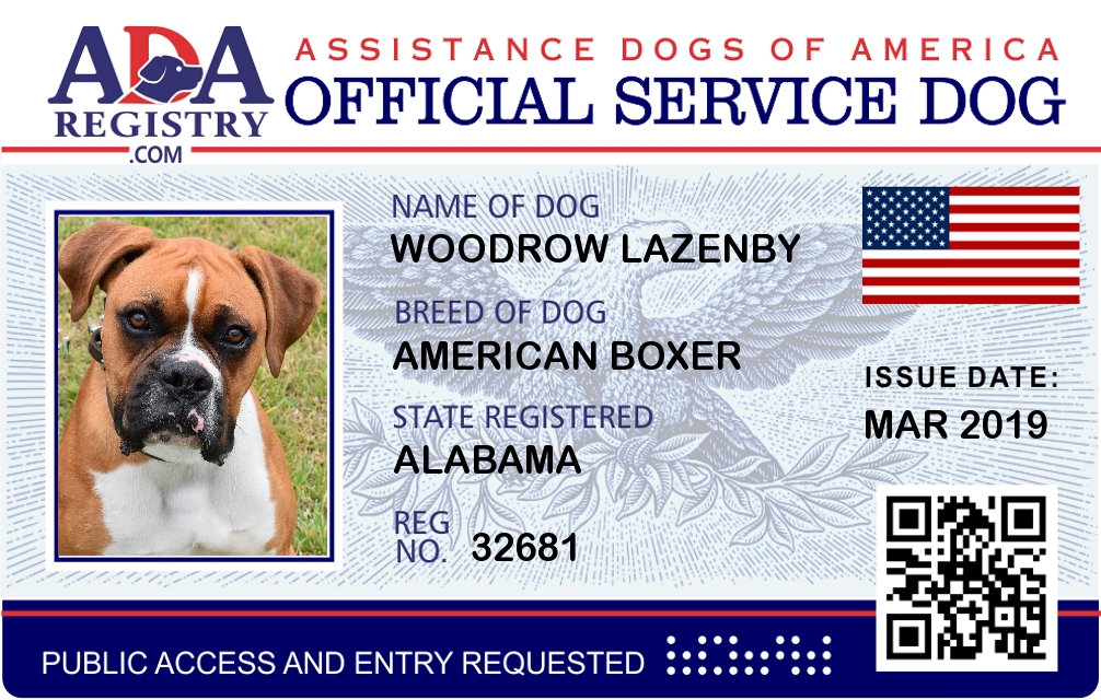 Therapy Dog Registration for Woodrow Lazenby