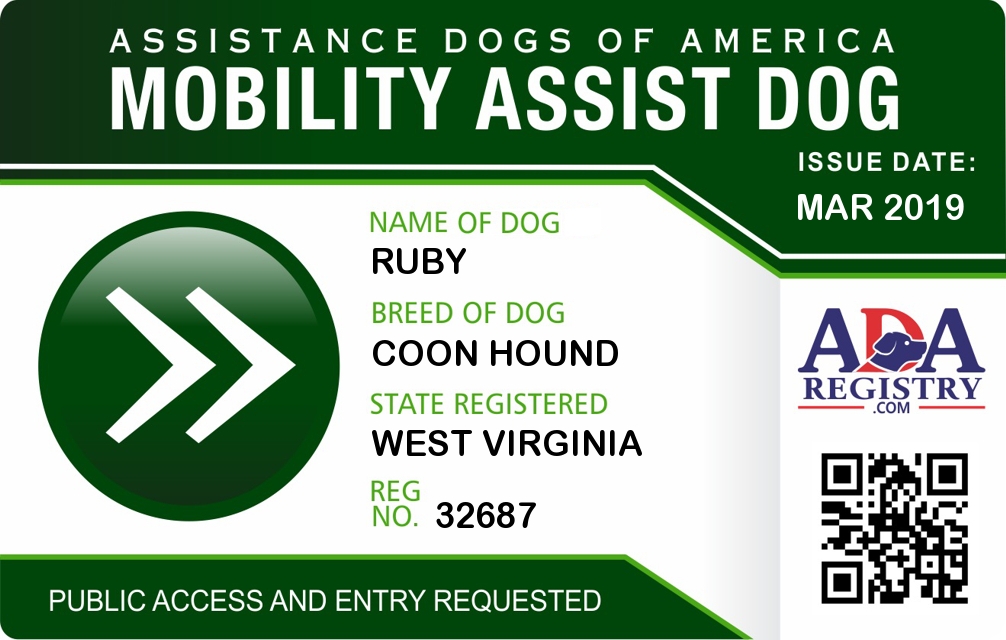 Brace / Mobility Assistance Dog Registration for Ruby