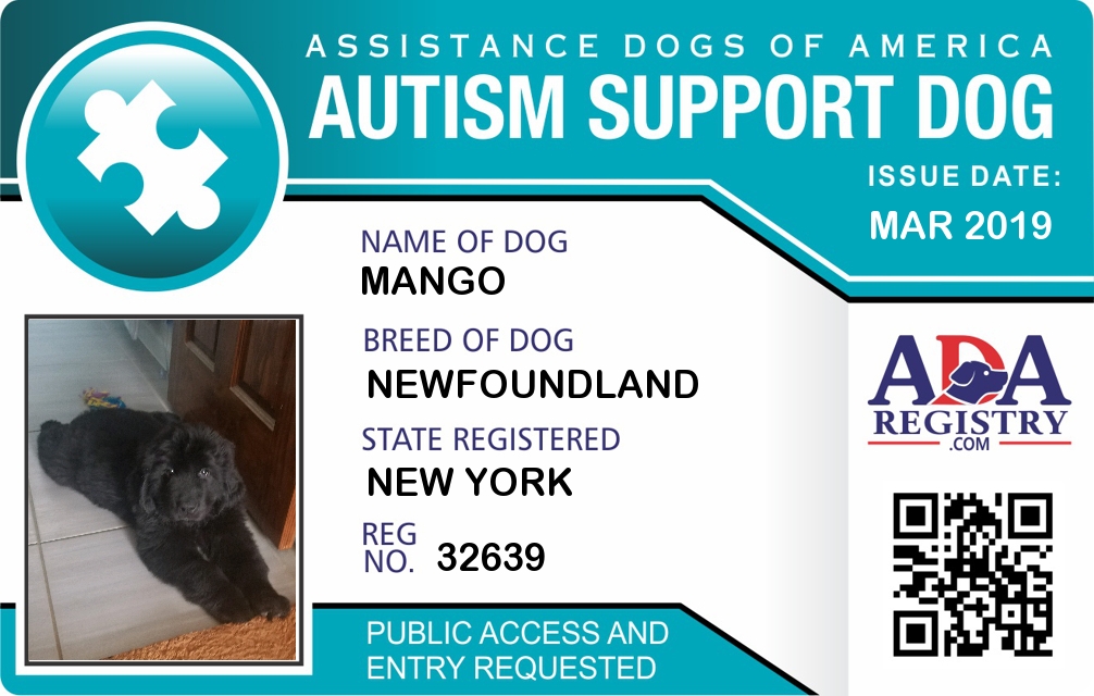 Autism Assistance Dog Registration for Mango