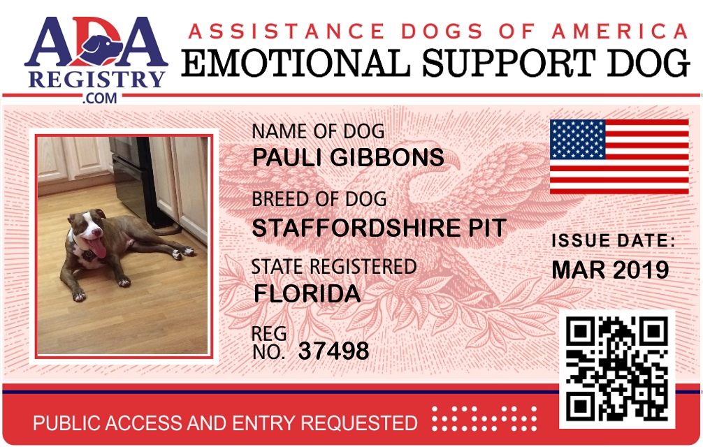 Emotional Support Dog Registration for Olivia Peanut Lange