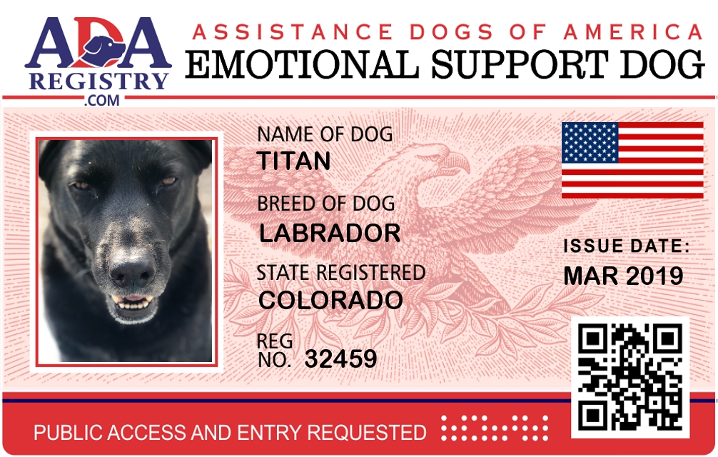 Emotional Support Dog Registration for Titan