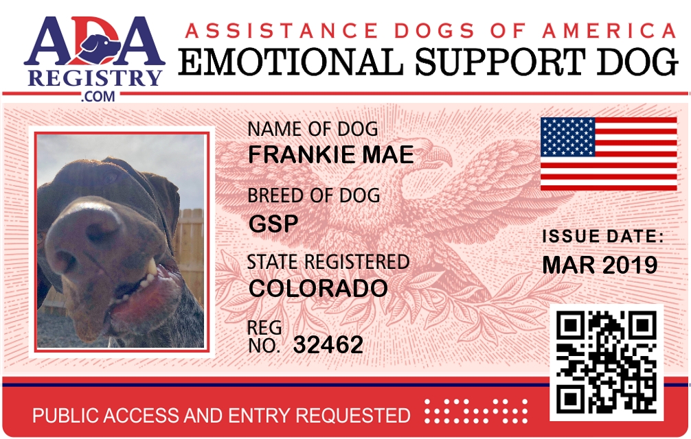 Emotional Support Dog Registration for Frankie Mae
