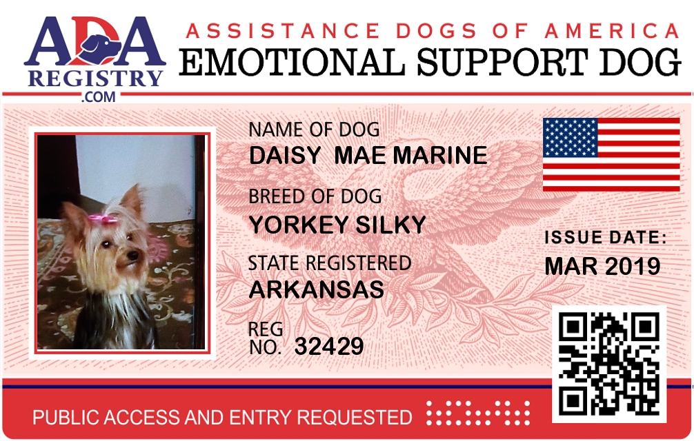 Emotional Support Dog Registration for Daisy Mae Marine