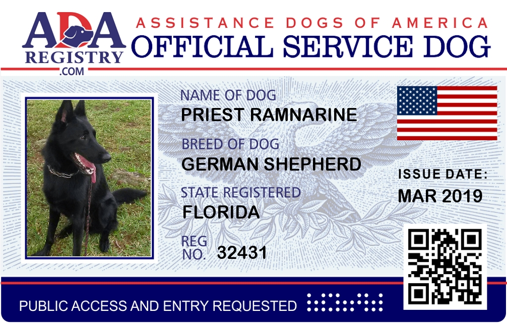 Personal Protection Dog Registration for Priest Ramnarine