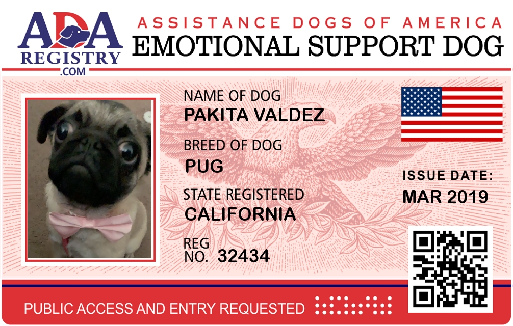 Emotional Support Dog Registration for Pakita valdez
