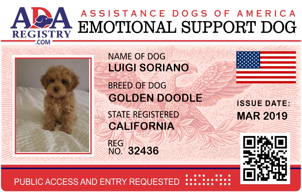 Emotional Support Dog Registration for Luigi Soriano