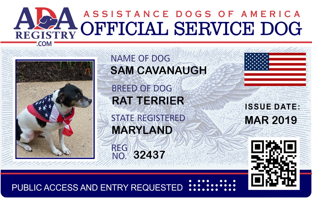 Service Dog Registration for Sam Cavanaugh