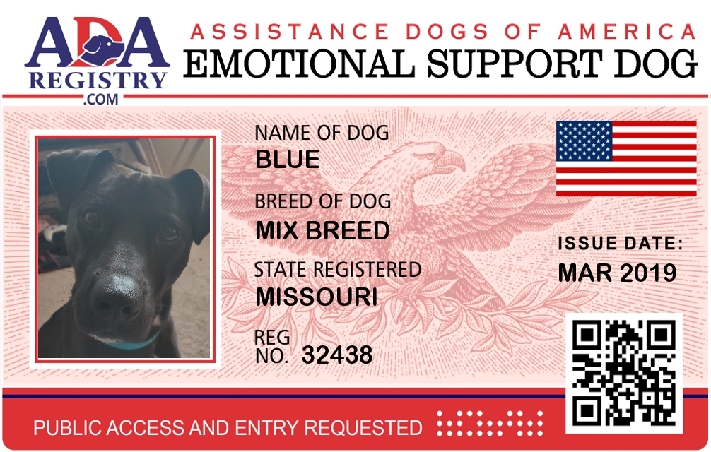 Emotional Support Dog Registration for Blue
