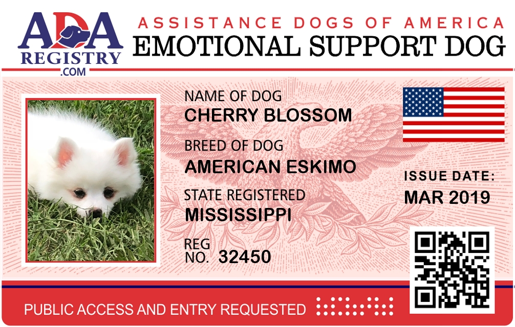 Emotional Support Dog Registration for Cherry Blossom
