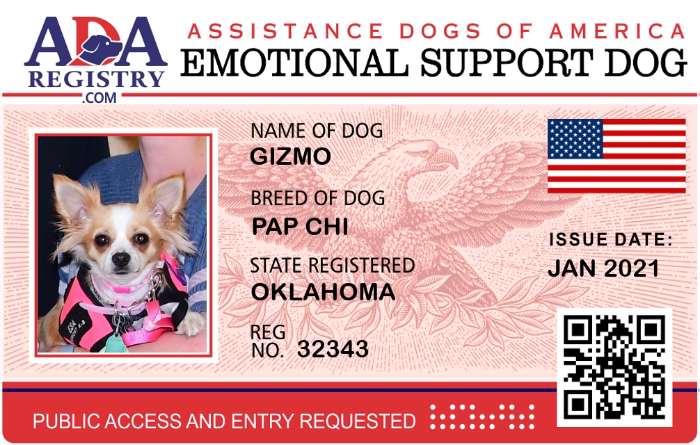 Emotional Support Dog Registration for Gizmo