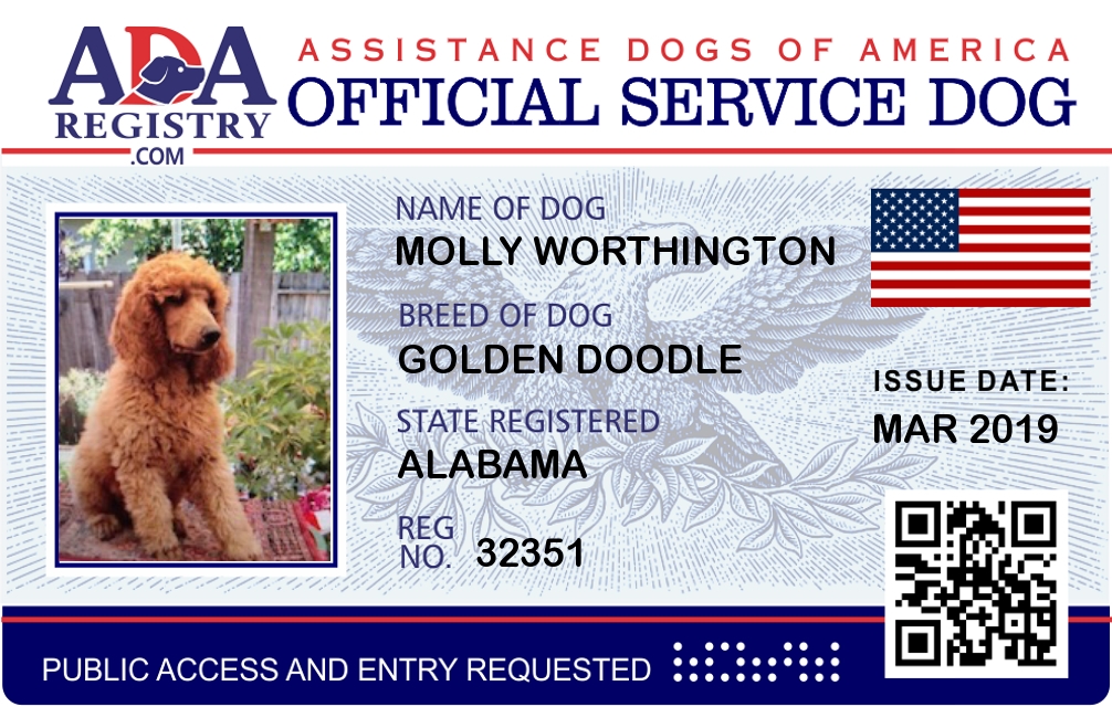 Service Dog Registration for Molly Worthington