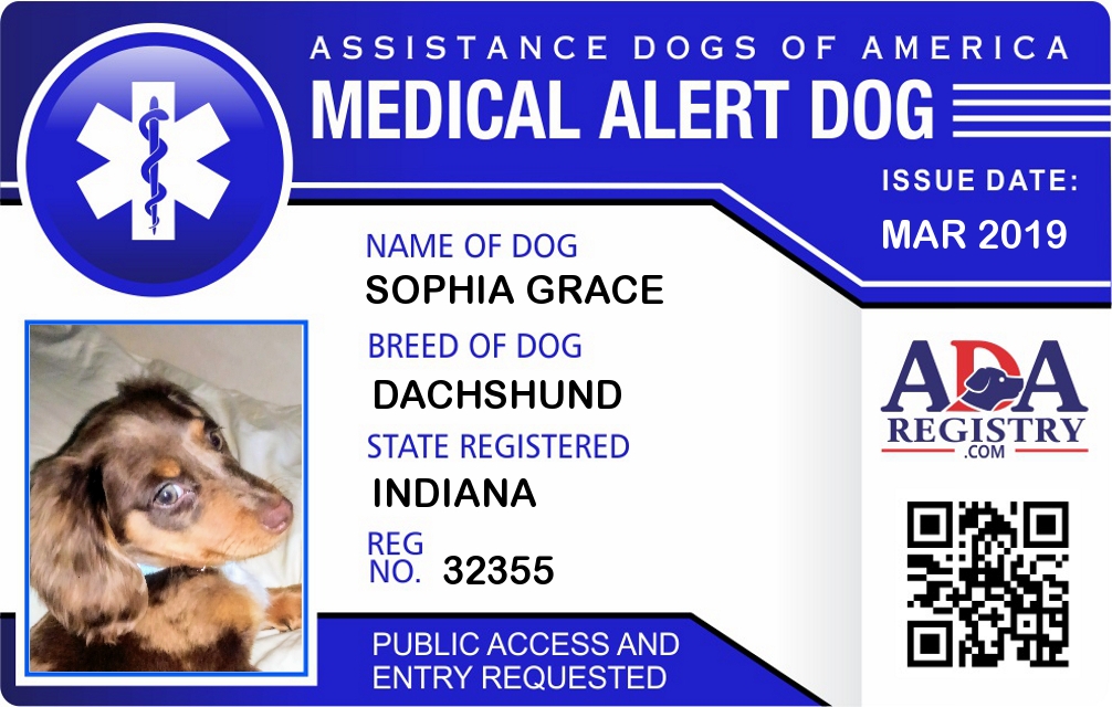 Medical Alert Dog Registration for Sophia Grace