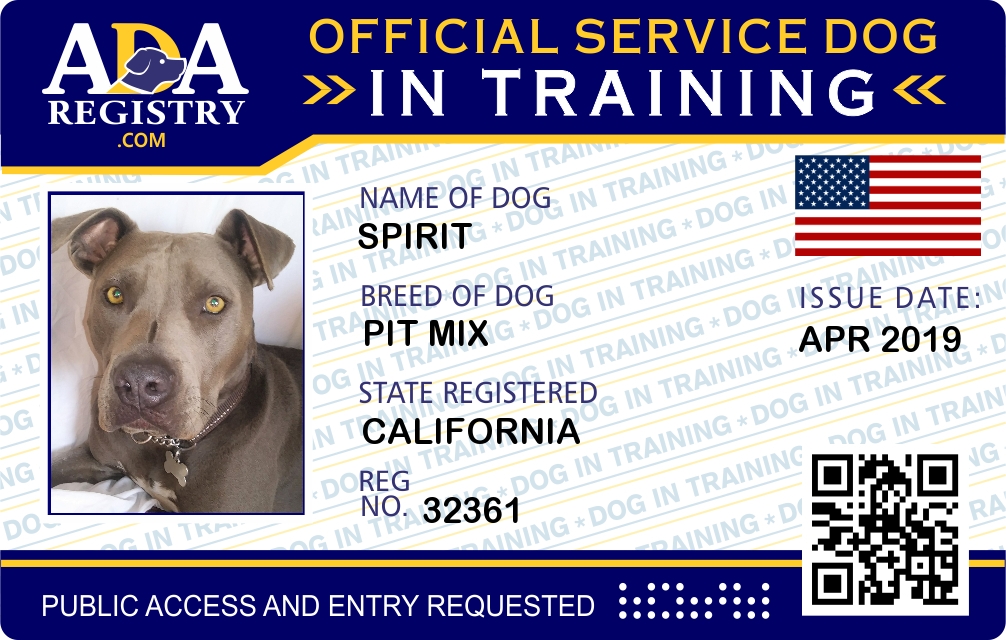 Service Dog In Training Registration for Spirit