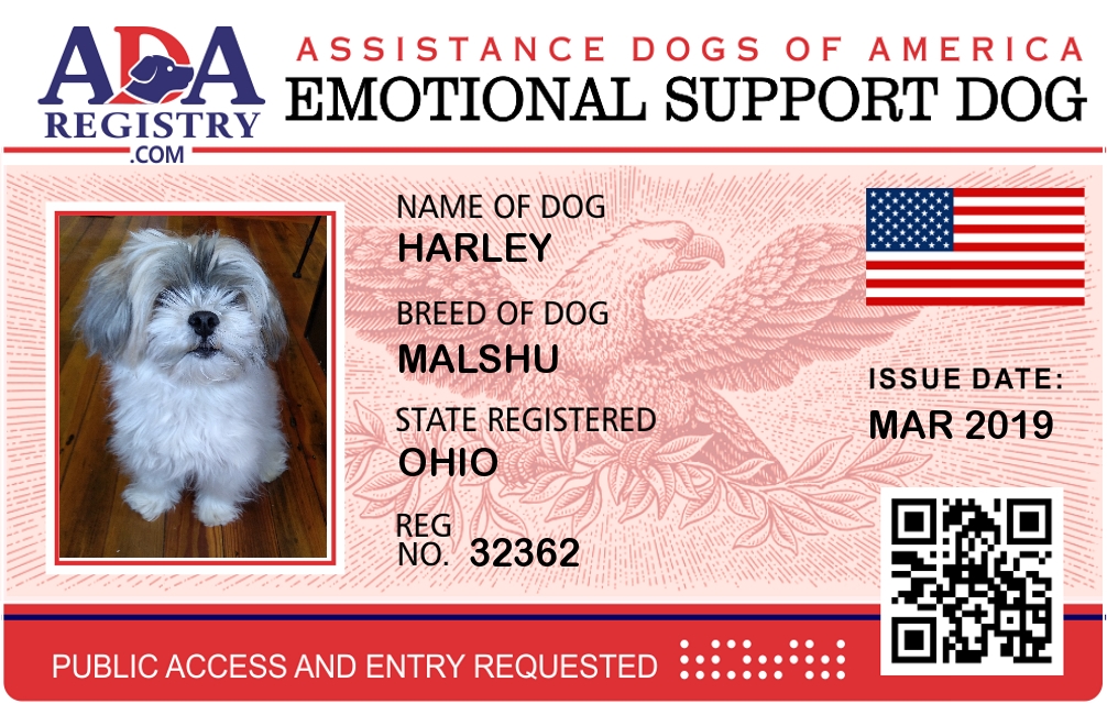 Emotional Support Dog Registration for Harley