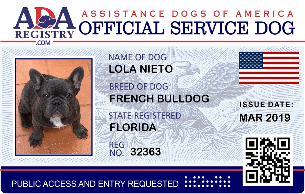 Service Dog Registration for Lola Nieto
