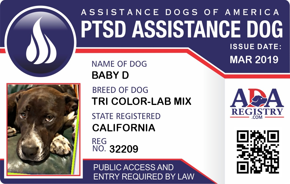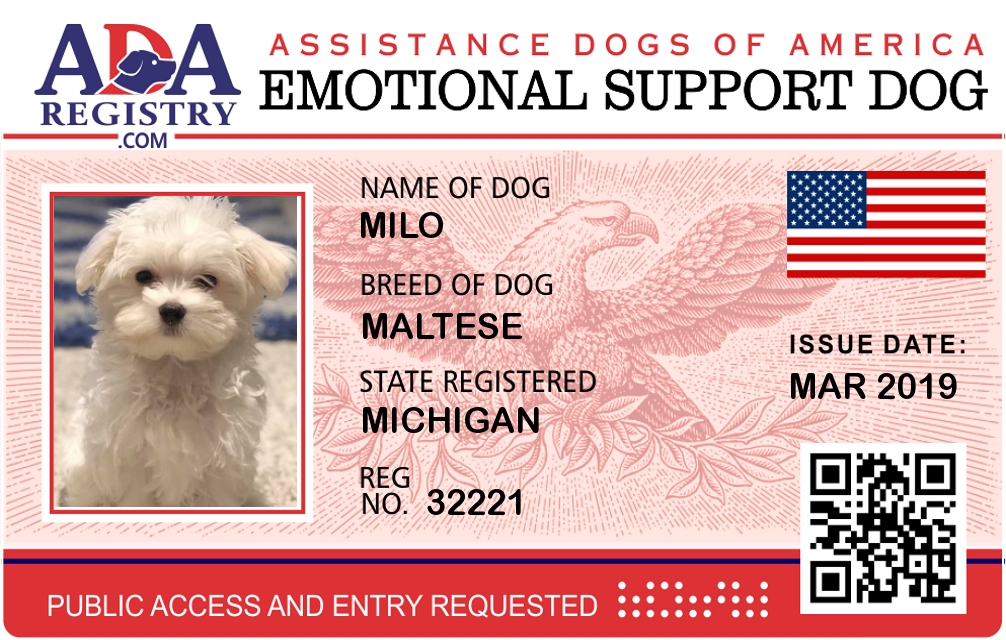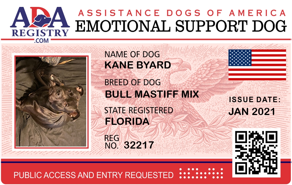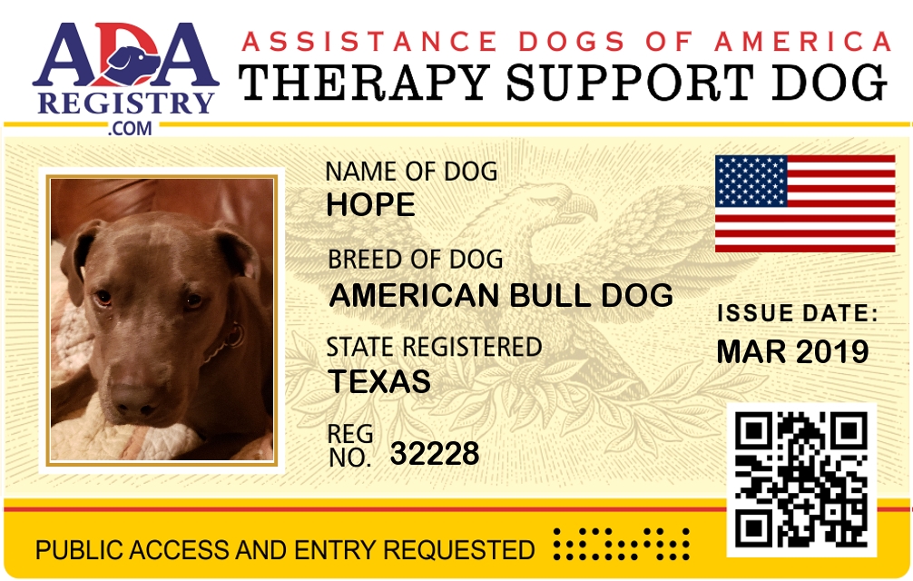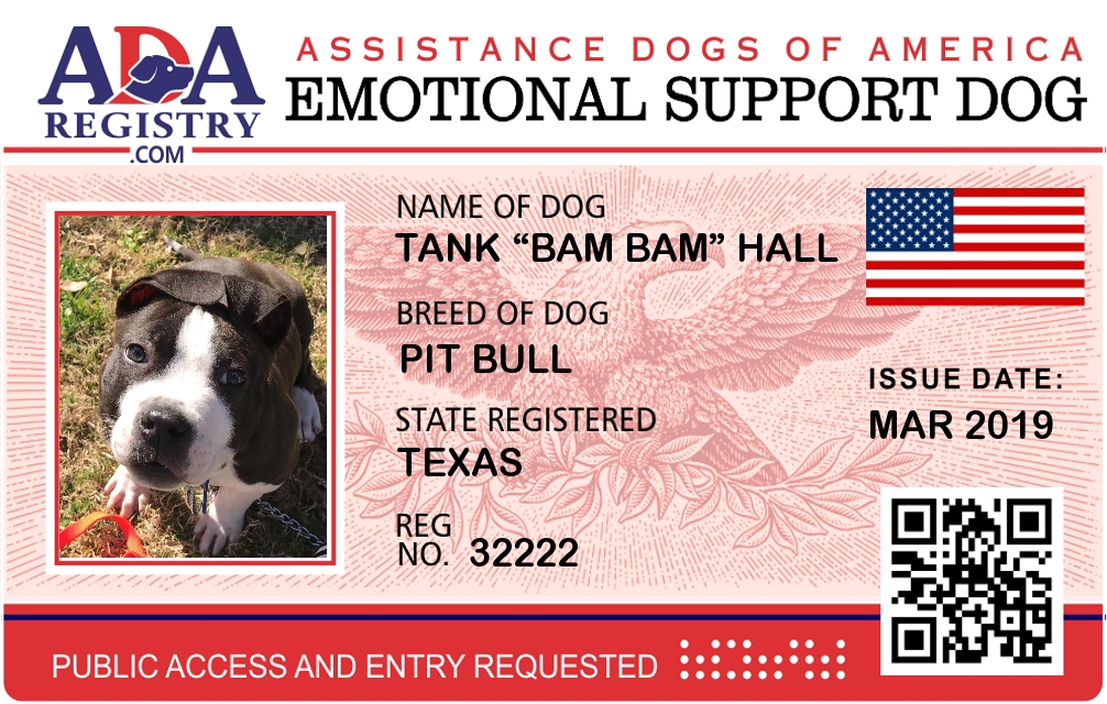 Emotional Support Dog Registration for Tank “Bam Bam” Hall