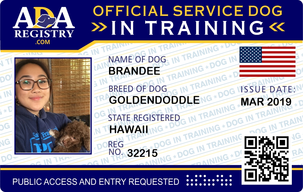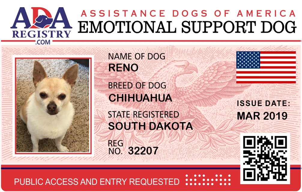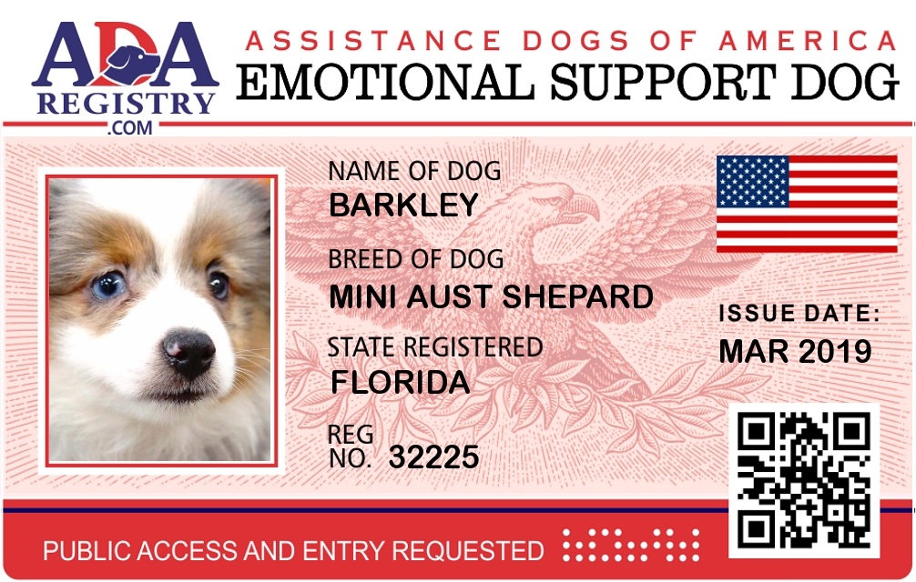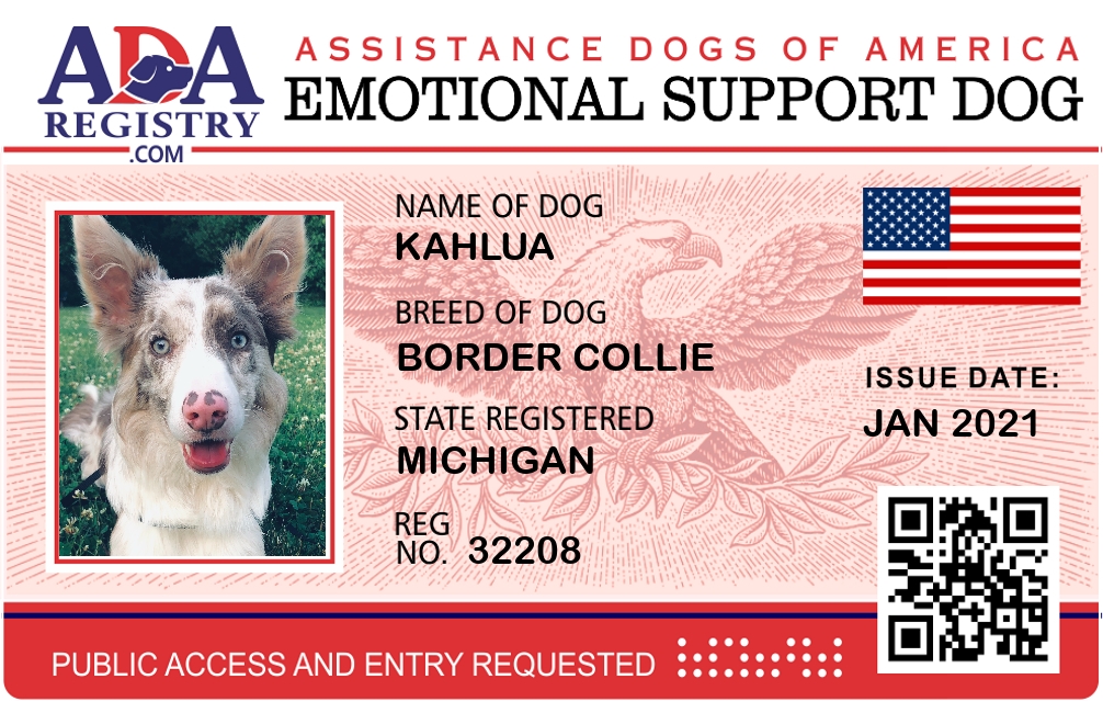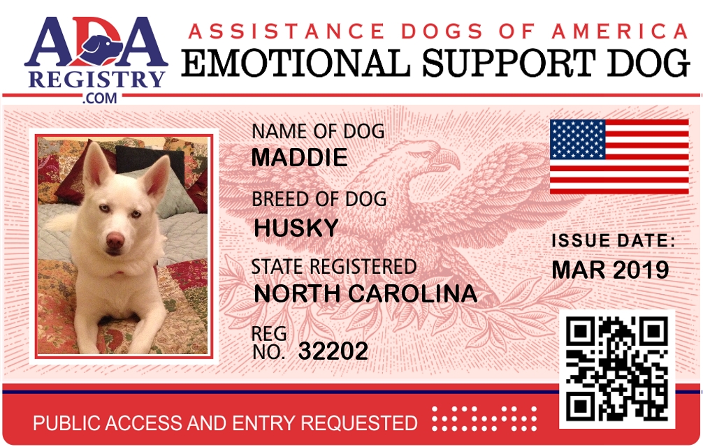 Emotional Support Dog Registration for Tank “Bam Bam” Hall