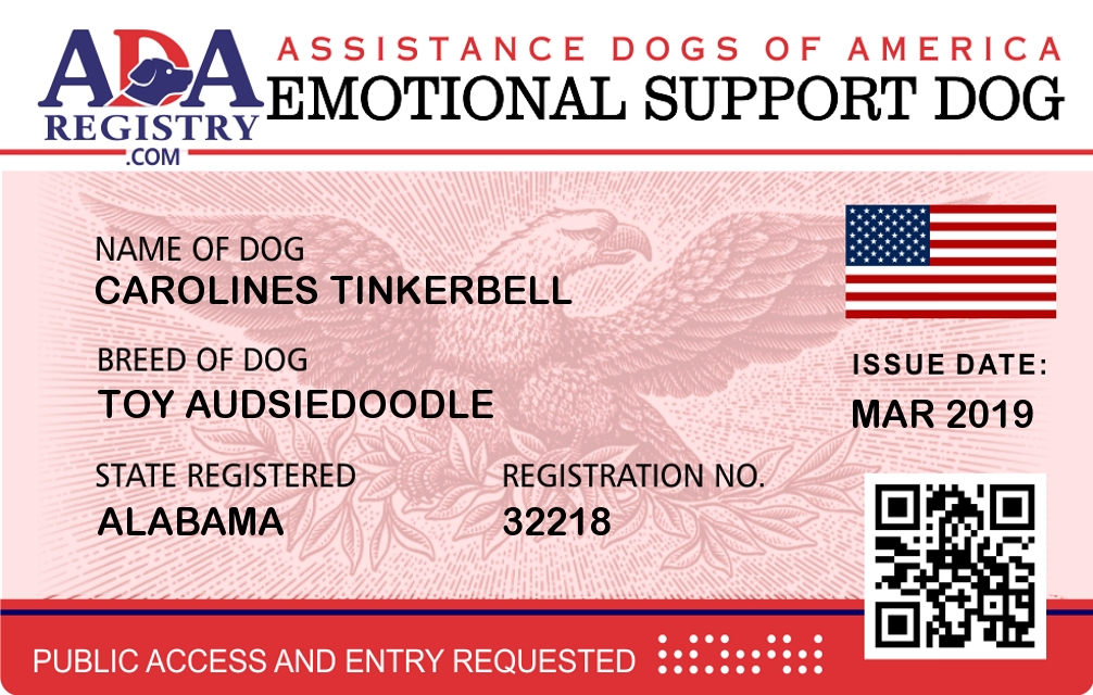 Emotional Support Dog Registration for Carolines Tinkerbell
