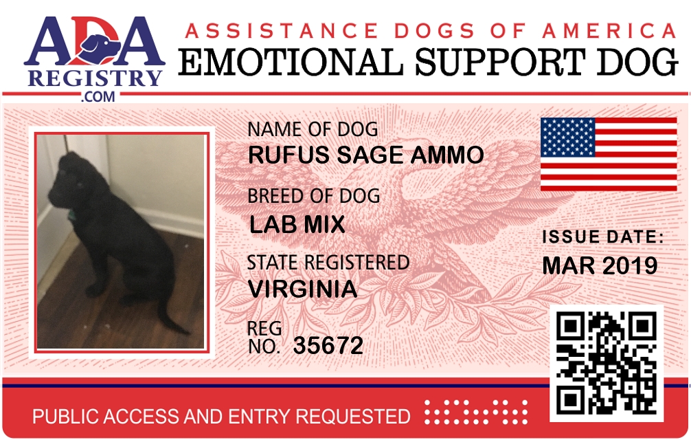 Emotional Support Dog Registration for Rufus Sage Ammo