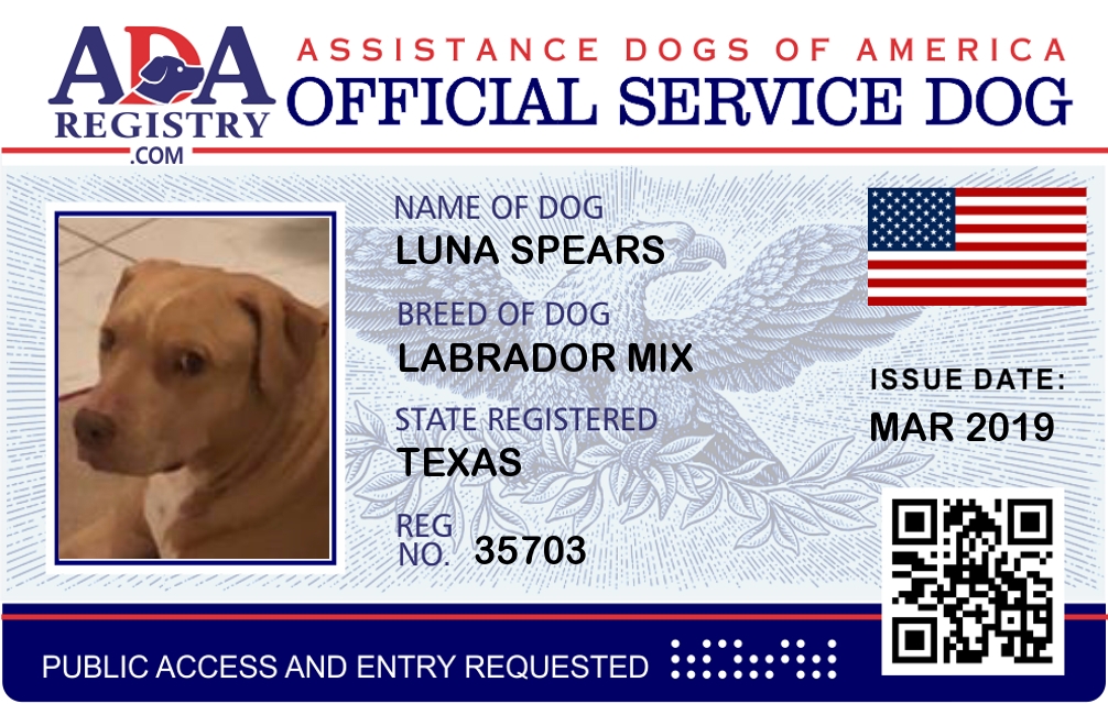 Emotional Support Dog Registration for Luna Spears