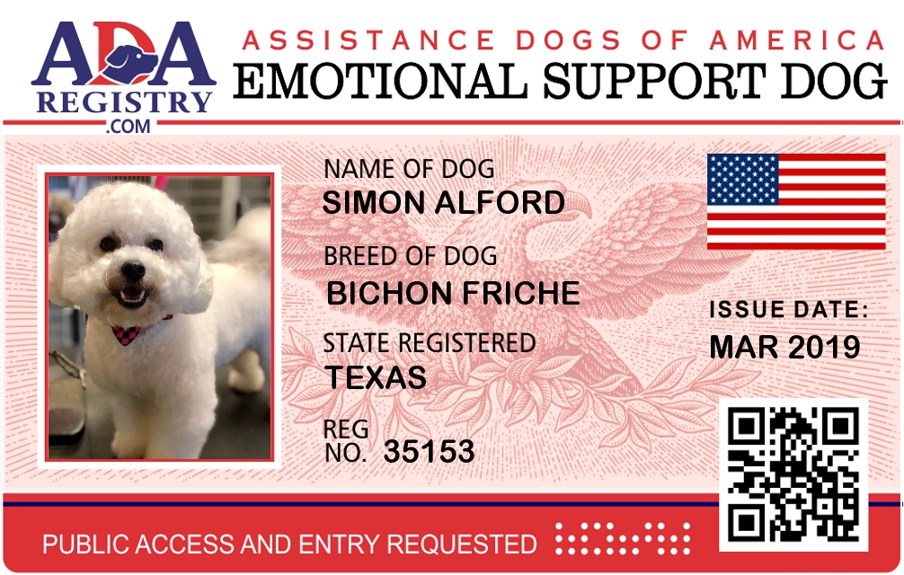 Emotional Support Dog Registration for Simon Alford