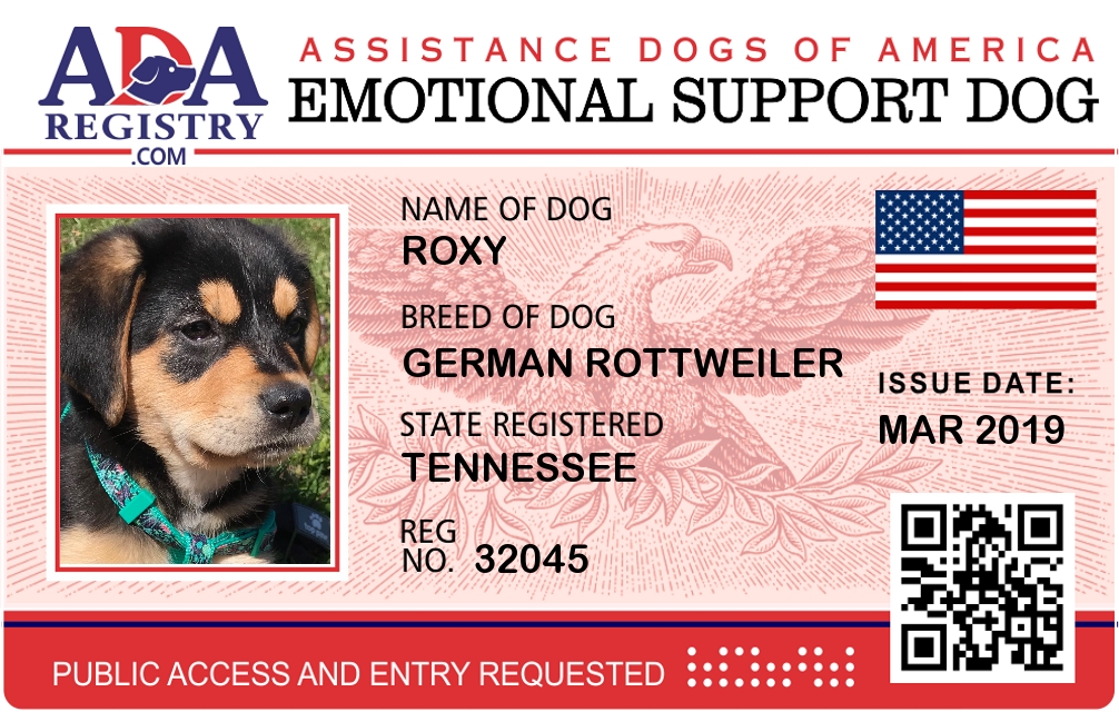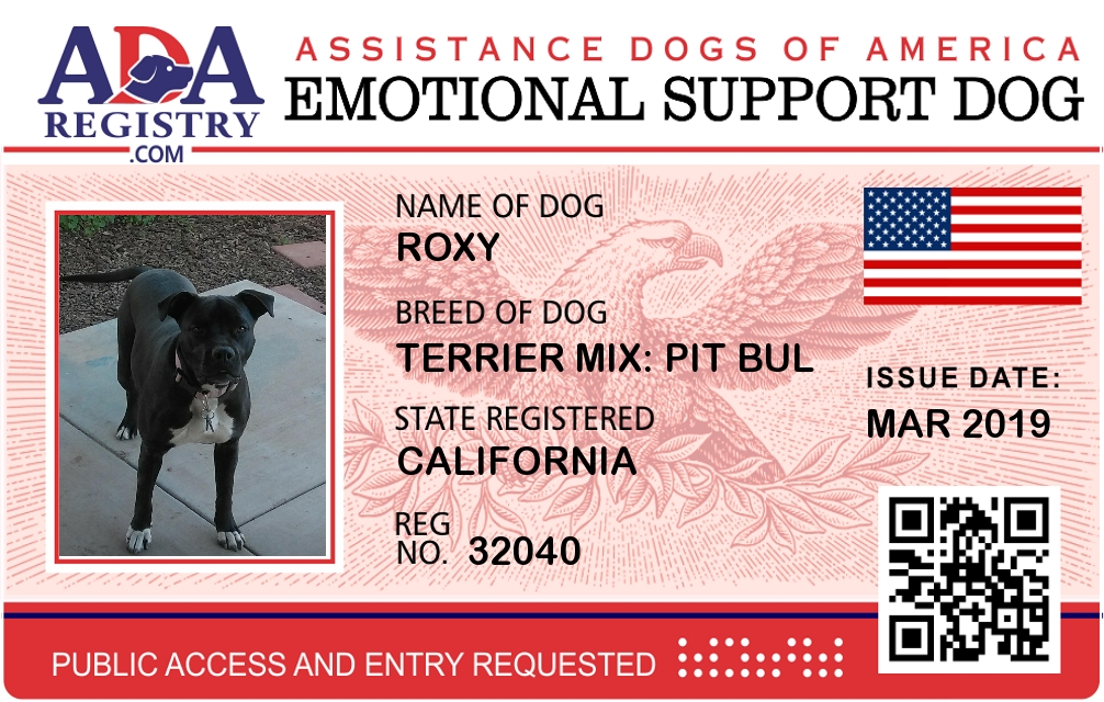 Emotional Support Dog Registration for Roxy REVOKED FOR FRAUD