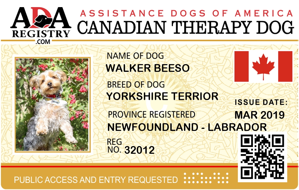 Therapy Dog Registration for Walker Beeso