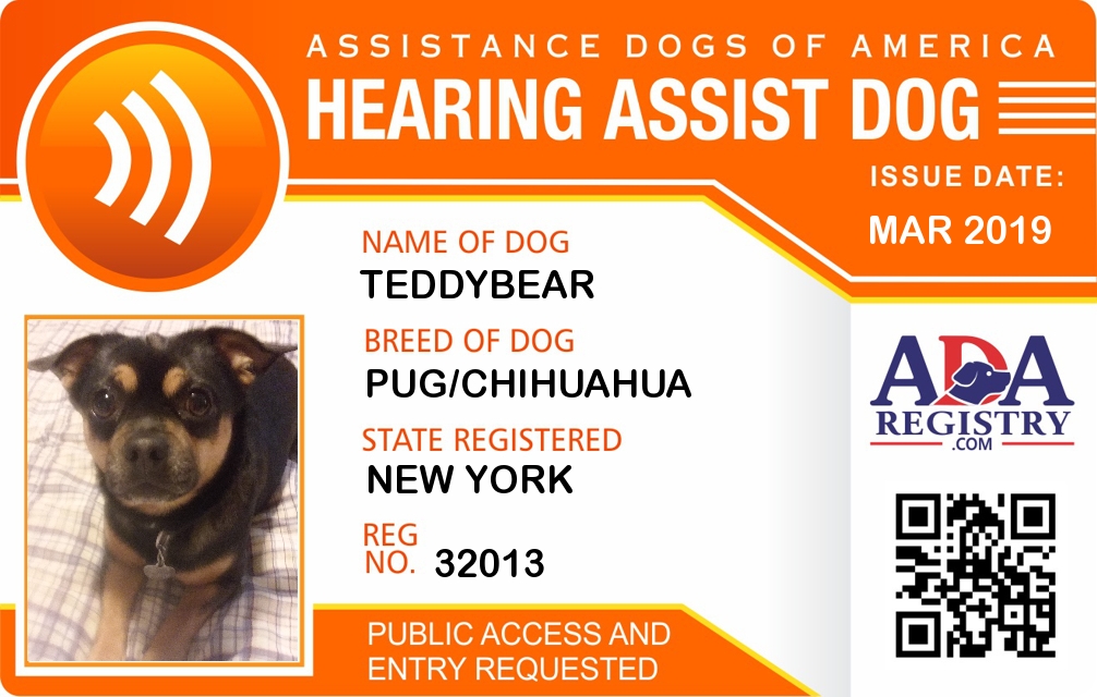 Hearing Assistance Dog Registration for TeddyBear