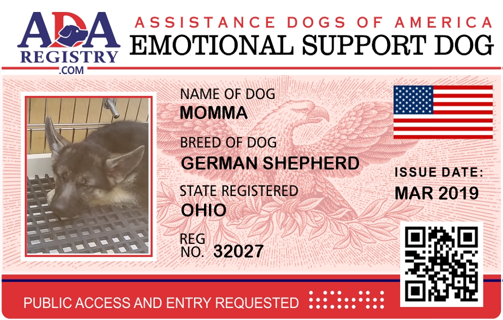 Emotional Support Dog Registration for Momma