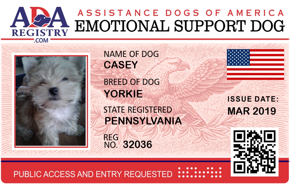 Emotional Support Dog Registration for Casey