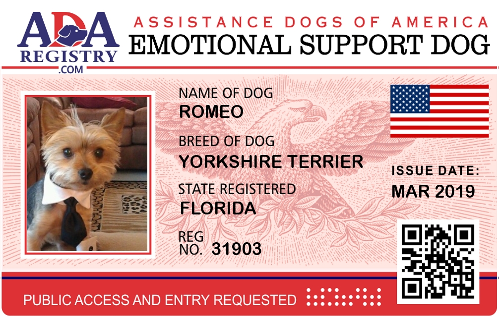 Emotional Support Dog Registration for Romeo