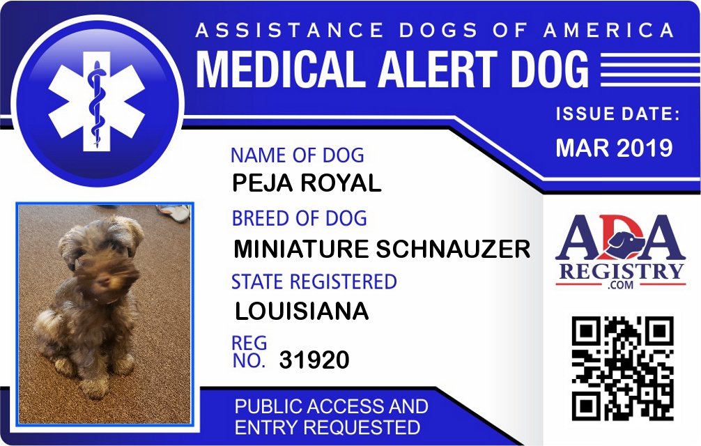 Service Dog Registration for Peja Royal