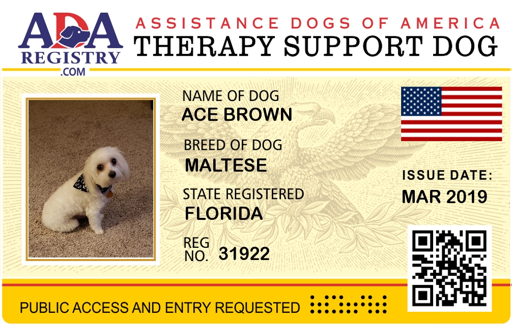 Therapy Dog Registration for Ace Brown