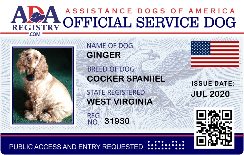 Service Dog Registration for Ginger